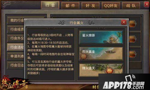 当行会等级和人物等级达到指定条件,即可在活动时间内参与行会篝火活动。点击游戏界面右下方的【社交】-【行会】-【行会活动】,选择行会篝火,并点击【参与】即可进入篝火地图选择页面。玩家可以自由进入“星火燎原”、“烈焰真金”和“烽火连天”地图,每个地图中都是有2个大篝火和4个小篝火的,并每隔5分钟在篝火边刷出神秘宝箱,击杀宝箱怪可以获得丰厚的宝箱奖励。