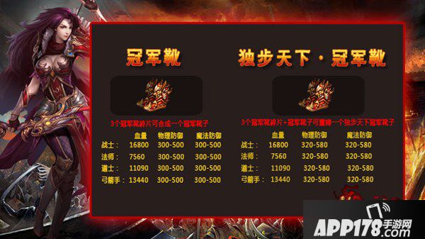 此外,最终获得前16名的战队奖励更为逆天,超多珍稀道具让人血脉喷张!不仅会有新的荣誉称号为强者加冕,更有海量金条、熔炼精华包、绑定超级祝福油以及声望令等奖励犒赏军功。而最终斩获冠亚军的战队还将获得符石随心玉以及额外的冠军靴碎片!3个冠军靴碎片可合成一个冠军靴,冠军靴有极高的血量、物防、魔防。而1个冠军靴再加上3个冠军靴碎片可重铸成极品装备, 属性加成令人艳羡! 同时, 符石随心玉的作用也是相当给力:使用后可指定符石中的一条属性成为完美精炼,100%生效!无疑,随心玉将是各位勇士竞相追逐的极品道具。 针对随心玉的奖励方式,官方将在论坛发布征集帖,听取广大玩家建议后在后续跨服3V3专题页中公布,欢迎广大玩家畅所欲言~