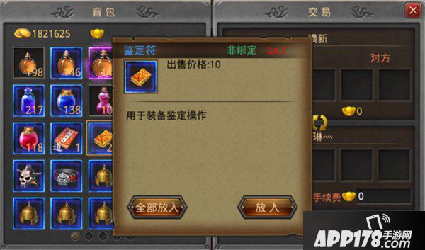 进入交易界面后,可看到左右分别为背包栏和交易栏,玩家从背包中选择要交易的物品,并放到交易栏中,选择单个放入或全部放入均可。设定好价格后,点击【锁定】物品,并点击【交易】即可。双方锁定并点击【交易】按钮即可完成交易。交易栏中会显示买卖双方的昵称、等级、交易物品、价格。