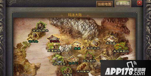1、首先点开小地图,选择世界地图传送到盟重。
