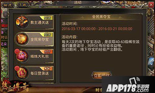 1、由于地下夺宝是玩家们以竞争的方式获取装备和宝物的,所以选择在在线人数相对较少的中午2点进入,有利于减少竞争压力,便于提升夺宝的成功率。