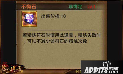 鉴于符石精炼失败会消耗符石精炼次数,所以系统特别推出了不悔石这以道具。使用不悔石进行精炼,失败时不会扣除精炼次数。不过如果精炼成功1次或没有成功过,是不可以使用不悔石的,最少要精炼成功过2次及以上才可以使用不悔石。精炼成功过2次-8次,可分别使用1-7颗不悔石。
