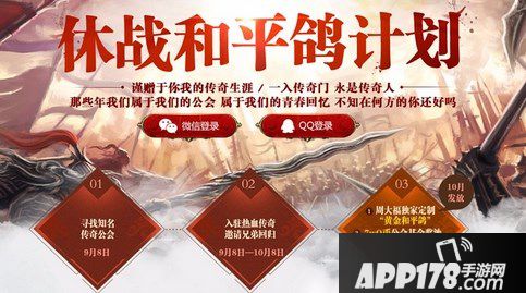 休战日福利狂欢绵延不断,黄金休战和平鸽计划正式启动,揭开传奇新篇序曲。所有的勇士,为了福利更为了荣耀,赶紧来参赛吧!