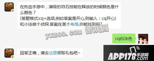热血传奇5月25每日一题:在热血手游中,满级的符石技能在释放的时候颜色是什么颜色?继续为大家送上今天的今天的热血传奇微信每日一题活动答案传奇宝箱助你战沙场!