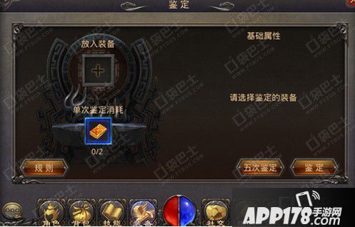 开启装备鉴定功能后,通过装备界面就可以装备鉴定了。放入想要鉴定的装备,消耗2张鉴定符即可获得随机1-3条的附加属性,对鉴定属性不满意还可以继续鉴定。如图: