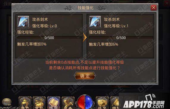 2、当技能达到满级时,且拥有该技能的秘籍(秘籍是开启技能强化的必备物品),就会出现如下提示。