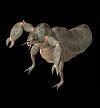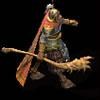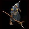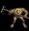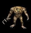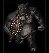半兽战士 一般半兽人有30年的寿命,但有一种半兽人的生命可长达50-200年。如果半兽人活过50年的话,它的皮肤会变成墨绿色(没有人知道为什么)。半兽战士已经生存了相当长的时间,因此有着更丰富的战斗经验和更强大的战斗力。它把食用过的动物的骨头作为武器。 |