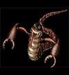 蝎蛇 这是一种令人不快的,穿着盔甲的蛇。它那悬着的巨大的眼睛可以望向任何方向。除了钳子,它长长的、锋利的牙齿也会造成致命的威胁。它们周身覆盖着坚硬的外壳,但你可以从腹部的软壳容易地杀死它们。要想解决它们你必须使用尽量高明的剑法。如果你不是一个经验丰富的勇士,将很难杀掉它们。 |