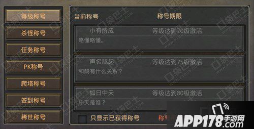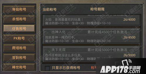 以上是热血传奇手机版称号大全,小编主要给大家带来了等级称号、任务称号、签到称号、稀世称号等称号介绍和称号激活等级。