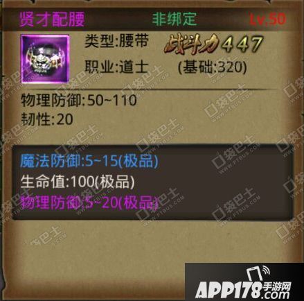 道士52级主线任务赠送的腰带,贤才配腰,属性如下: