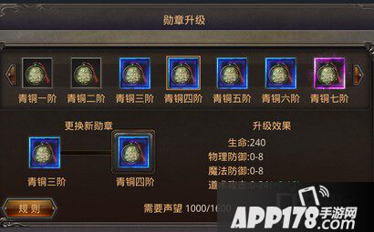 升级勋章所需要的物品:声望,目前我们可以通过皇城悬赏和除魔任务来获得声望,每次升级勋章都会提升我们非常多的战斗力,每当勋章提升了一个级别升级所需要的声望就会提高很多。