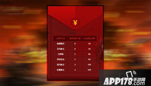 还记得祖玛教主、骷髅精灵、白野猪、虹魔教主这些世界BOSS吗?《热血传奇手机版》让你体验到更激情更有趣的BOSS玩法。9月15日龙争虎斗版本全新上线,同步上线的众多精彩活动中,“击杀BOSS爆现金”活动让各大世界BOSS更富有,玩家更激情。只要在9月15日-10月4日期间的周末(一共三周,累计六天),登录游戏即可参加本次活动,玩家在游戏中与世界BOSS的对战并成功击杀它,便可将BOSS产出的现金红包分享给好友,最终击杀者必得现金,好友抢红包可得现金大礼或道具宝箱!如此劲爆的活动,全服玩家岂可错过?快快提升战力,大显身手吧!