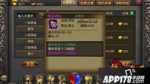 道士对应的是晚玉项链,道术攻击80—132、暴击20;