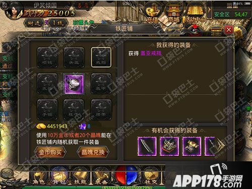 用于铁匠铺换取装备,精魄可以较大几率获得紫装,小编第一次换,就得到一个道士的暴击戒指,盖亚戒指,还在等什么,赶紧去刷怪啊!