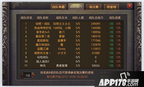 每一场战斗后,可以留意看战队排行。在比赛当天21:00之后会有最新的排行数据。