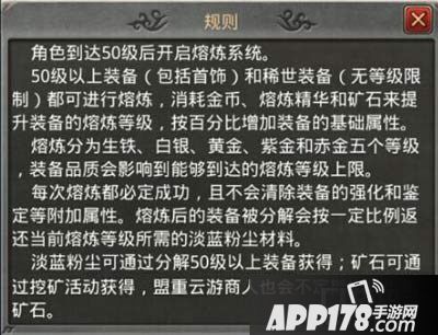 当我们达到50级后开启熔炼系统后,就可以熔炼50级以上的装备,包括首饰和稀世装备,都是可以熔炼的。但是需要消耗金币的熔炼精华和矿石来提升装备的熔炼等级,增加装备的百分比基础属性。