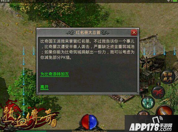 1、在游戏中,最快的洗掉的红名的方法是:点开世界地图传送盟重野外进入红名村。红名册大总管位于红名村安全区38.31处,为比奇添砖加瓦,贡献300元宝给比奇,就能让大总管赦免50PK值。不限次数的赦免,只要你足够土豪,完全不用担心红名惩罚的问题。