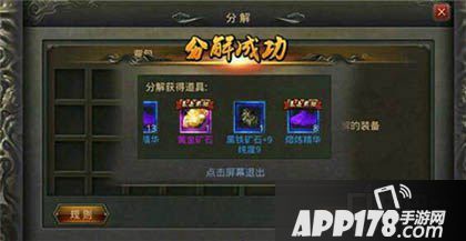 紫色装备的分解有几率得到黄金矿石。分解得到黄金矿石的几率是随机的。不过据说3个紫色一起容易出,又据说装备越多,颜色越多,出的概率也越大。当然,这些都只是据说而已,没有什么实际证明,有兴趣的玩家可以试试