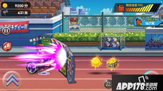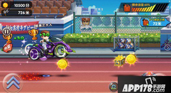 用“跳跃”来躲避沿途路上的“熔岩”和“地雷”成为了游戏最基本的操作难点,而不知谁放在马路中间的“跨栏”则需要用右侧“冲刺”来化解。