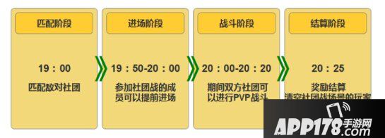 “社团战”是PVP玩法,玩家只要加入所在社团超过2天,且等级大于等于30级就可以为社团披甲上阵;满足条件的社团每日都可以定时参加挑战,而7天为一个循环,这便是它的整体赛制模式;每日的19:00,社团成员将会收到邀请函,通告20:00准时参与团队PK,优胜社团成员将会获得大量奖励以及社团币奖励!