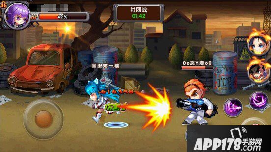 在进入社团战场景之后,玩家可以看到敌我双方的社团成员,而点击敌方成员即可开启挑战,战斗模式采用实时PVP模式,在战胜对手之后,玩家的剩余血量亦不会补充,而是会延续至下一场挑战中;在牺牲之后,玩家会拥有每人1次的免费复活机会。