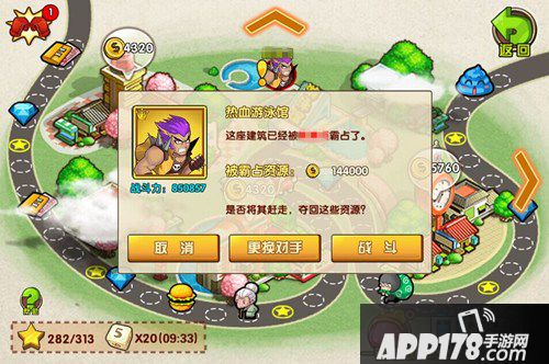 一般当自己占领了太多建筑的话,是很有可能遭到他人的嫉妒的!废话,有钱能不赚么?难道眼睁睁看着其他人撸走?!所以大家其实很容易看到这种情报:你的OO建筑被XX占领了。是不是男人?是!干不干?干!然后我们再瞄一眼被占领的金币额度……不能忍不能忍,这可是我买包子的钱,把包子钱还来!战力GET,愤怒GET,好啦我们可以抄上家伙进攻了!