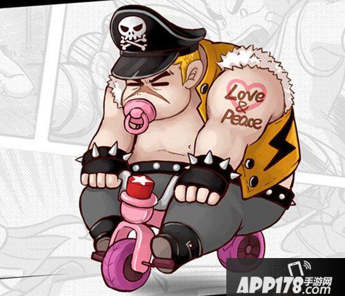 作为游戏中另一个抢足风头的Boss,这个染了一头黄色头发的肥仔,出场时总会骑着一辆粉红色的自行车,体重吨位之大简直要把身下的车子给压扁了……最离谱的在于,他的嘴里还咬着一个粉红色的奶嘴,实在令人怀疑他的智商跟年龄是否匹配!左色臂膀上还有“Love&Peace”的纹身,哼,打着“爱与和平”的旗号却在校园里欺凌弱小,还有比这更可恶的吗!