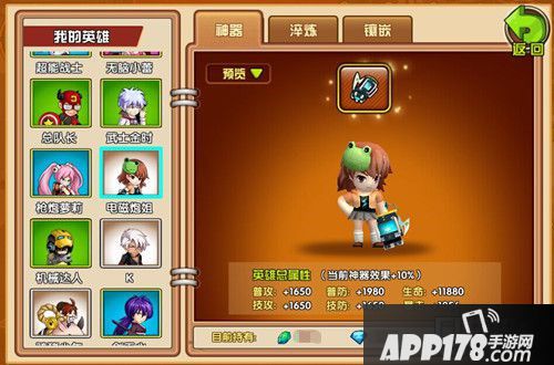 这里小苍老师偷偷告诉你们啊,其实决定一场争斗的胜负才不仅仅是这些数值呢,看起来屌炸天的数字也就能哄哄刚入门的人,大家可都是在《热血街霸3D》里混的风生水起的睾丸,啊不对不对,高玩(真是作死的输入法!老师才没有暴露什么!)所以真正厉害的是每个英雄的特有神器~例如炮姐的神器就是电磁炮plus,一旦装备,整体属性提高10%呢!是不是要比一个个属性提升方便多了呢?拥有神器的炮姐,简直犹如得了水的鱼,在一干英雄中大放异彩~