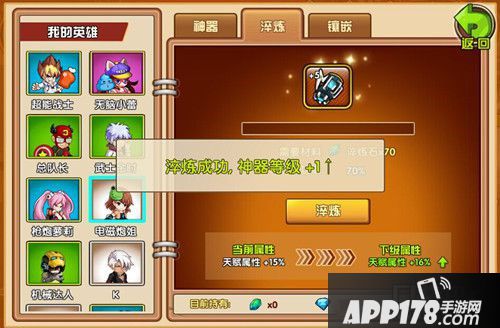 我们的神器也是可以进行升级的哦,需要用到淬炼石。虽然升级会比较慢,但是一旦升到一定的高度就天下无敌了有木有!所以同学们就阿Q精神的安慰一下自己吧~