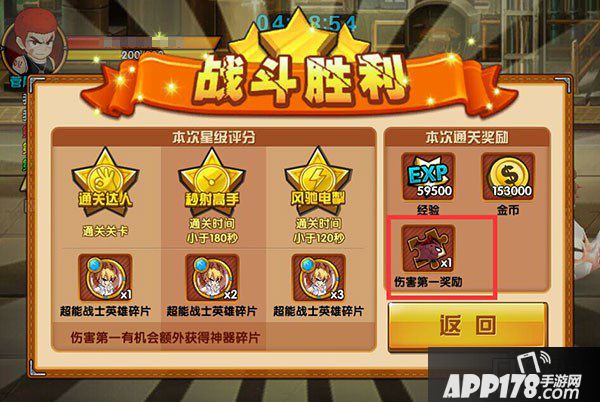 看了以上的介绍,童鞋们是不是越来越热衷于收集每一位强大的超级英雄了呢。助战英雄不仅仅可以为你提供强大的火力支援,而且是有隐藏奖励在里面的。每天参加组队副本可以获得十分丰厚的奖励,例如金币、英雄碎片、经验值。最后,最最最重要的是如果某位童鞋在干翻了Boss的过程中贡献最大,提供了成吨的伤害输出获得第一的话,这位玩家便可以获得这个助战英雄的神器碎片噢(比如当天的助战英雄是剑心,那么剑心的神器碎片就妥妥到手啦)。既能涨战力,又能炫造型,简直酷毙啦!