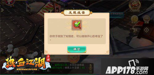 寻宝开始后我们一定要仔细阅读江湖探宝的线索。有很多小伙伴接取任务以后喜欢直接点任务跟着做,这里是要自己根据线索来寻找人物或者道具的。