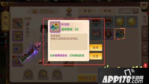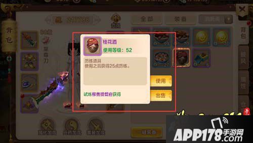 ④可以通过历练道具补元丹(每个使用之后获得250点历练,在试炼柳善提督府和红利商城中获得)和桂花酒(使用之后获得25点历练,在试炼柳善提督府中获得)来获得大量历练。