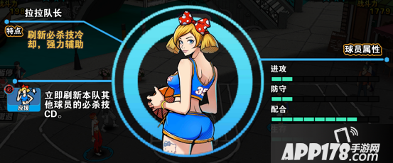 从属性来看,大胸姐拥有傲人的G罩杯(咳咳…)进攻防守能力其实很低,作为一个内线球员,很多人认为防守弱是不契合的,但是在街球联盟中,生存才是王道,在整个篮球中其实配合都至关重要,作为一个强力生存的内线,拉拉队长拥有持久的作战能力和完美的助攻能力,她用来配合有抢断能力的得分位, 强力得分的助攻位都十分合适。