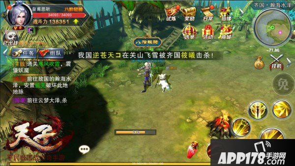 《天子》手游世界里的齐楚两国向来是水火不容,在开测的第一天,两国众多玩家就在边境上大打出手,国战还没正式打响,双方已经是剑拔弩张,完全是一副随时准备开战的景象,浓浓的火药味儿也是让玩家们颇为紧张,前往边境都十分谨慎,生怕看漏了眼,出现敌国玩家前来截杀。然而随着游戏的不断深入,因等级原因导致主线任务停顿,国家任务便应时而出,每天任务量多且可以刷新,但国家任务里不只是要在本国领土内完成,更要前往凶险万分的敌国领域,让量多经验足的国家任务变成了块烫手的山芋,如何游刃有余的完成国家任务,也是每个玩家需要在游戏中面对的问题。