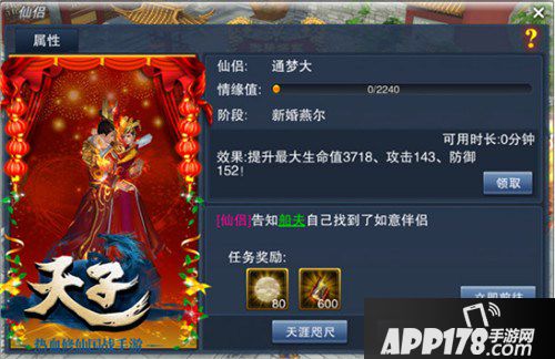 异性伙伴亲密度达到99(至少送5个金兰草),即可在“国家商店”购买随机刷出的“情缘玉佩”(结婚道具),举行婚礼!而凭借情缘玉佩可以找皇城仙官开启结缘仙礼仪式,仪式完成后将正式结为仙侣!