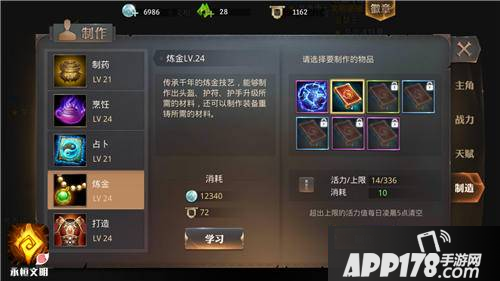 打开制作页面,可以发现炼金、打造两个技能,消耗帮贡、银币将这两个技能提升到一定等级后,花费一定活力值,就可以制造出相应的装备、防具制造书了哦。这一切都和活力值息息相关哦,所以多多参加每日的活动,对你帮助很大。