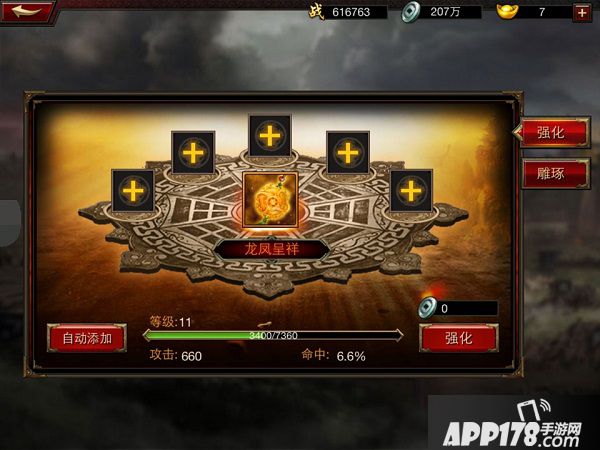 ◆ 每名武将可同时穿戴两件饰品,饰品分为配饰和战马两类。整件饰品在夺宝过程中通过碎片合成获得,在竞技场达到特定排名也可以兑换橙色饰品,饰品的碎片也可以通过商城购买橙色饰品箱子获得。