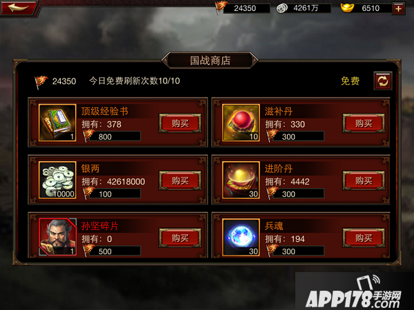 接下来要介绍的就是国战商店系统了,在国战中可以获得大量军功,这些军功可以在国战商店中兑换经验书等日常所需的资源,而且也是兑换红色武将碎片的主要渠道之一。