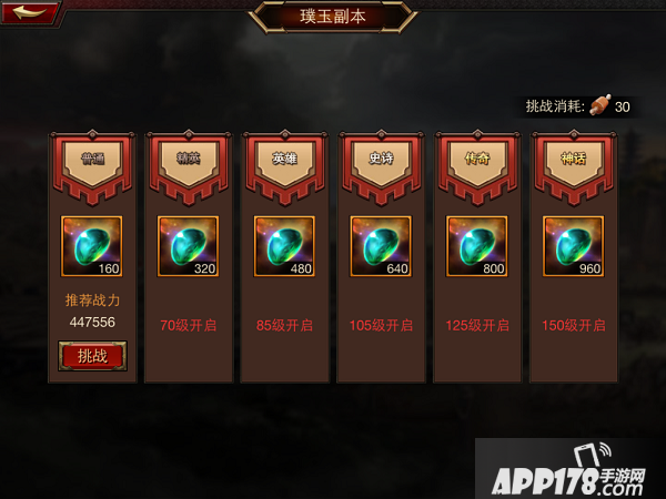 璞玉副本是日常副本的其中一个,每周的周二,四,六,日开启璞玉副本,需要消耗30点体力,一天只能挑战一回。根据大家自身的战力水平,可以选择不同难度的副本进行挑战,难度越大,收获得璞玉越多