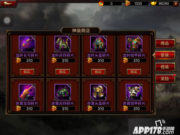 橙色与红色装备碎片也可在三国无双的神装商店中购买。
