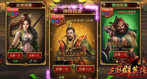 喜欢三国的玩家们,相信你一定曾经幻想过让诸葛亮、周瑜、司马懿三大军师并肩作战的样子。不过在很多游戏中,这基本是不可能的,因为有阵营的限制。《三国群英传》手游打破了这一常规模式,无论是绝世英雄吕布、赵云,还是无双谋士诸葛亮、司马懿,都可以在神将招募的时候获得。想组成孙尚香、貂蝉、甄姬、大乔、小乔这样的后宫队?还是想组成黄忠、黄盖、严颜、华佗、廖化这样的老将队?都能满足你。