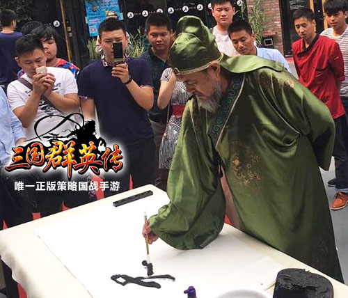 在活动现场, 和关二爷一同现身的还有82斤重的青龙偃月刀,很多市民及粉丝踊跃上前试举关刀,但面对这把1:1打造的超仿真偃月刀,大多数人都败下阵来。作为94版电视剧《三国演义》中关羽的扮演者,陆树铭塑造的关云长形象已成为众多三国粉丝心中的经典,而他也成为了关羽的代名词。二十二年后,再见青龙偃月,二爷难掩内心激动,大踏步上前耍起刀法,众多围观群众纷纷赞赞叹,关公英气不减当年,三国热血仍在!活动现场,陆树铭还展示了关二爷文武双全的一面,挥毫泼墨,为《三国群英传》手游提书: “大丈夫,当谋天下”。笔锋劲道、刚猛有力,一气呵成、足见功底。为了满足很多不能到达现场的粉丝的愿望,陆树铭还第一时间在最近相当火爆的映客直播间与网友进行了互动与对话,讲述了当年拍摄《三国演义》时的剧组时光。很多粉丝通过直播平台送上礼物,并留言:二爷威武。