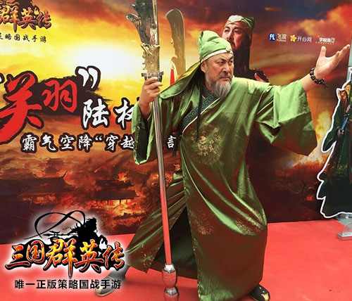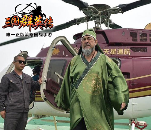 7月7日,为答谢上线以来广大粉丝的大力支持,《三国群英传》手游在北京举办粉丝惊喜见面活动,特邀代言人陆树铭再演关羽,乘坐私人飞机空降帝都。直升机在京城上空盘旋,途径798、望京soho、奥林匹克森林公园等帝都标志建筑之后,缓缓降落。关二爷一身戎装从飞机上走出,长袍美髯风采依旧,一脸沧桑仿佛真的从三国乱世中穿越而来。随后,陆树铭来到东郎创意园,与早已闻讯等候的粉丝们亲密互动并合影留念。