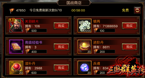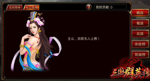 在《三国群英传》手游中,想成为一国的君主也不容易。第一次国战开启时,第一个选择国家的玩家则为第一天的君主,每日结算时贡献度最高的玩家则为第二天的君主,以此类推。所以想连任君主的玩家必须每天都把贡献值刷到第一才行。当人,君主也是有特别的君主奖励的,点击右上角的“君主奖励”图标即可查看各国君主每日奖励和统一天下君主奖励。国家占领的城市数量越多,君主奖励就越丰厚。