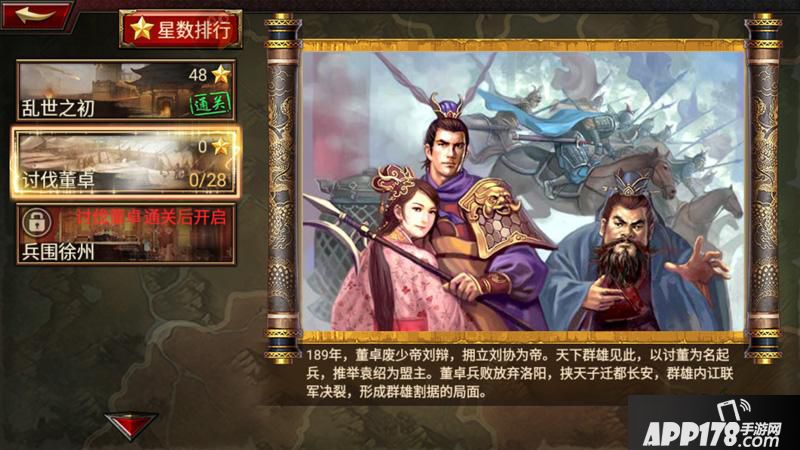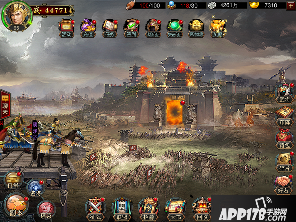 游戏玩法同样是根据原作剧情走向设置副本内容,但剧情副本的进程则以地图城池的形式串联,让玩家在推副本的时候产生一种逐鹿中原的感觉。在刷剧情副本之余,游戏还提供了日常、精英以及名将等副本内容,让游戏的整体玩法非常充实。