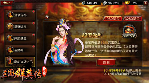 除了1980元宝档位,我们还设置了3280元宝档位,玩家可根据需求进行选择。两种档期同时开放,每笔充值只可单独购买一档。每挡登陆送礼只能购买一次。在购买其购买豪华登陆送礼的玩家,还可以在购买其过后每日领取相应签到奖励赢取额外福利哦。
