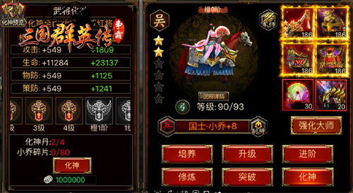 一直以来,《三国群英传-争霸》手游就因其“人物处处有亮点,玩法个个有诀窍”被玩家视为最佳三国题材手游。每个玩法环节都能强势提升战力,达到出出其不意的效果。接下来小编就为主公们揭秘游戏中新开启的“化神”玩法,强势提升帐下武将,将传奇勇将化为真神为主公效力。