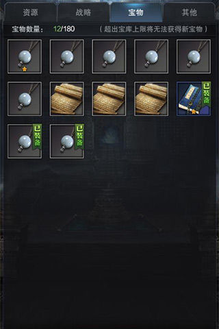 珍宝阁中探寻获得的每类宝物都可以分为白阶、绿阶、蓝阶、紫阶、橙阶这几种品质,其中白阶品质最低,橙阶品质则为最高。寻得的宝物品阶越高,就越可能携带技能,甚至是高级技能。寻得宝物的品阶与派去寻宝的武将魅力相关,魅力值越高则寻得高阶宝物的几率越高,寻宝所需消耗的时间也会越少。所以主公记得要时刻派遣魅力属性高的武将前往珍宝阁为自己带来福音哦!需要注意的是,武将不能装备比自己品阶高的宝物,且只有当武将处于空闲、耕种、铸币、修筑状态下时才能赐予或卸下宝物。寻得的宝物可以出售银两,所换取的资源为不会被掠取的安全资源。