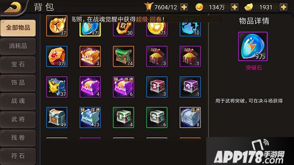 玩家该怎样进行突破呢?先说说突破的几个基本材料,金币元宝这里就不多说了,都是必须资源。关于突破石,由于初期突破石来源有限,每天只能从过关斩将和探宝中获得固定的数量,且初期过关斩将要通关拿满突破石也并不容易。而金币和元宝在初期并不那么少见,因此有些玩家会有想用元宝换突破石的冲动。这里小编必须提醒大家,随着等级的增加,过关斩将难度就不会那么高,而且委派任务的加入也会获得不少突破石,因此突破石在后期肯定会多出来。需要用来突破的武将数量有限,而元宝永远是最重要的资源。当然初期在经济条件允许的情况下可以适当使用金币探宝来获得突破石。