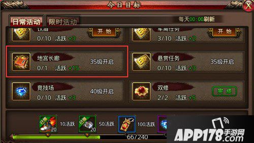 35级以后就可以征战地宫长廊了,少侠可以组队通过盟重省的镇守大将处进入。地宫长廊是日常活动,全天都可以参与。击杀地宫神殿的BOSS有几率掉落梦寐以求的高级技能书!